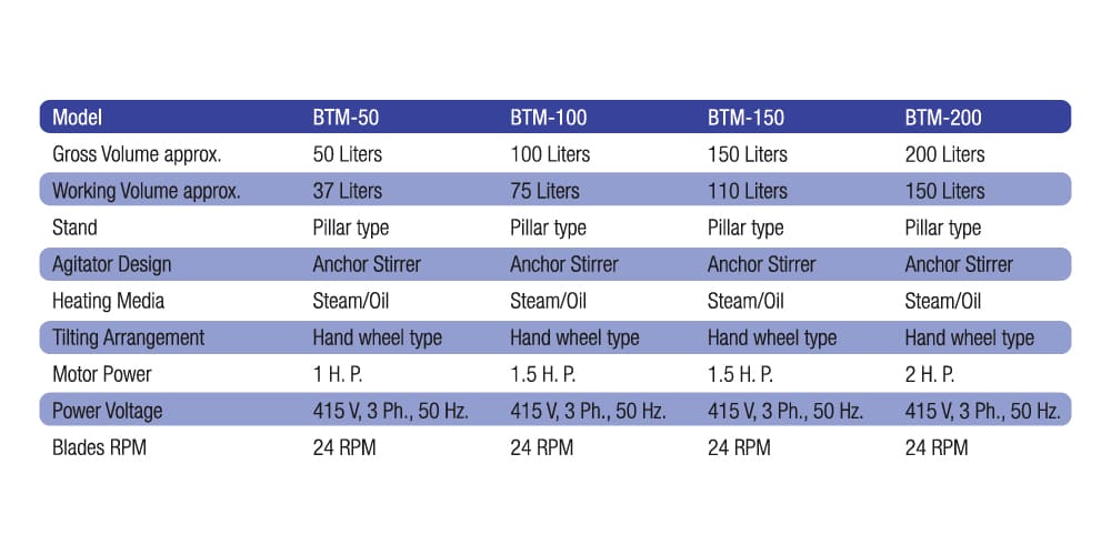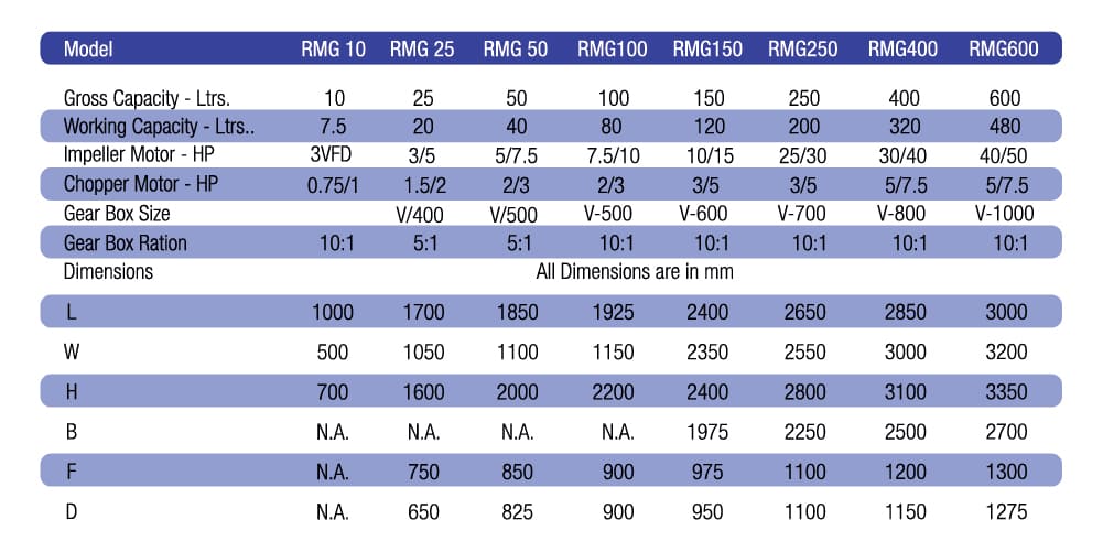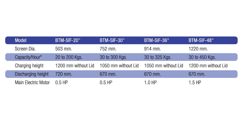 capacity ranging form 10 ltrs. to 1000 ttrs. (je from 5 kgs to 400kgs. Approx.)
