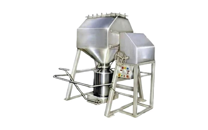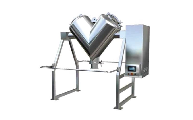"V shape product container for Ideal dry mixer for lubrication of granules and homogenization mixing of multiple batches in to single batch.
